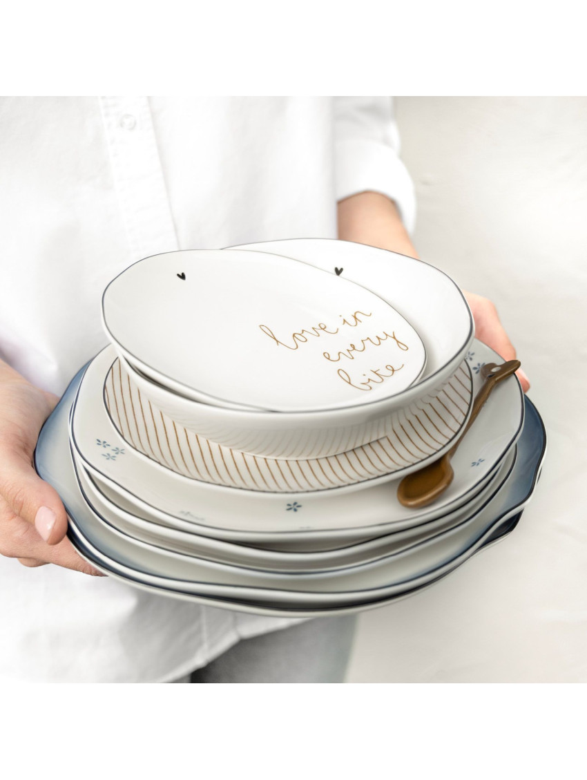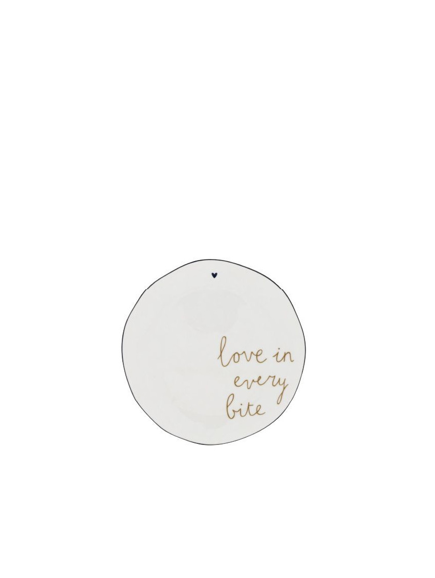 Kouzelný dezertní talířek s nápisem "Láska v každém soustu" holandské značky Bastion Collections.