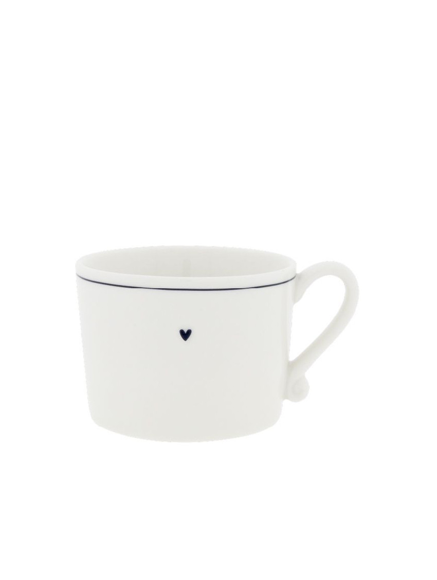Minimalisticky laděný hrnek z nové kolekce značky Bastion Collections s černým srdíčkem a obroučkou.