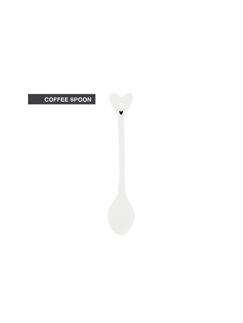 Krásná lžička v bílé barvě s čeným srdíčkem je skvělým doplňkem k hrnečku stejné holandské značky Bastion Collections.