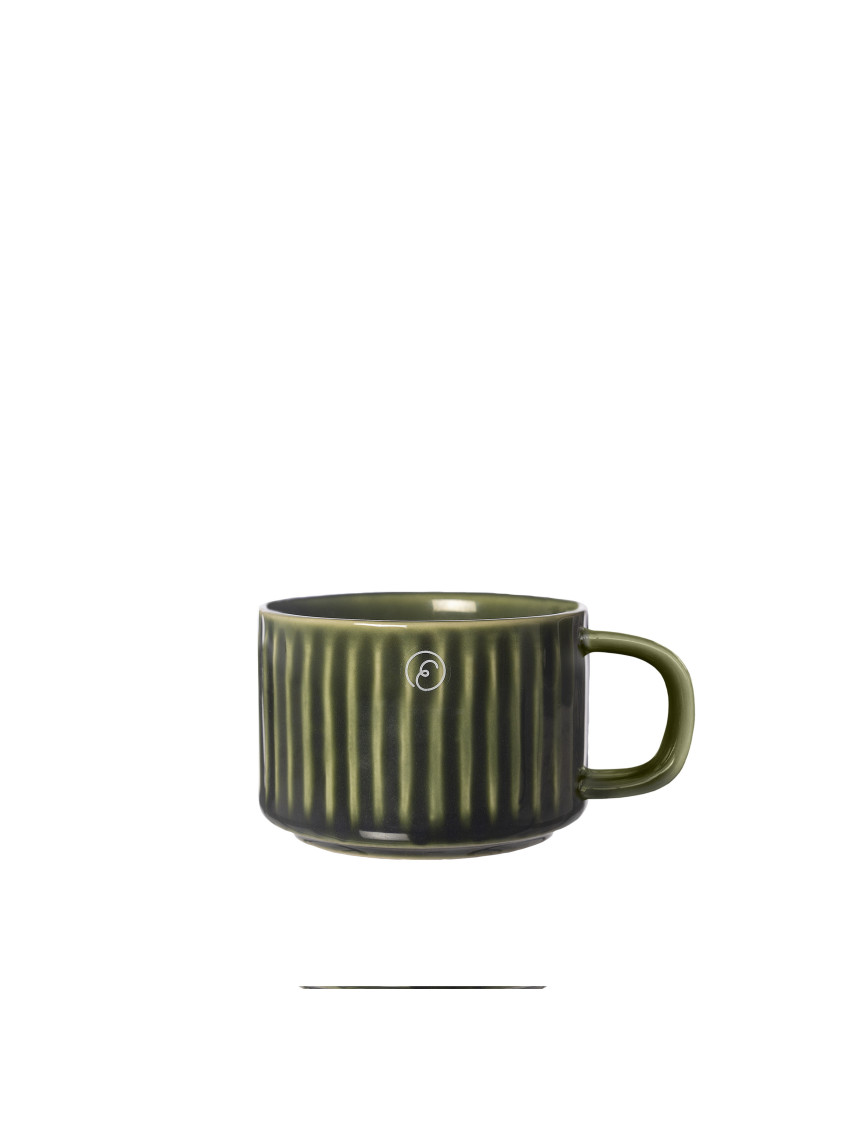 Vytvořte si útulnou chvilku a podávejte espresso nebo svařené víno v tomto zeleném vroubkovaném keramickém hrnku švédské značky ERNST.