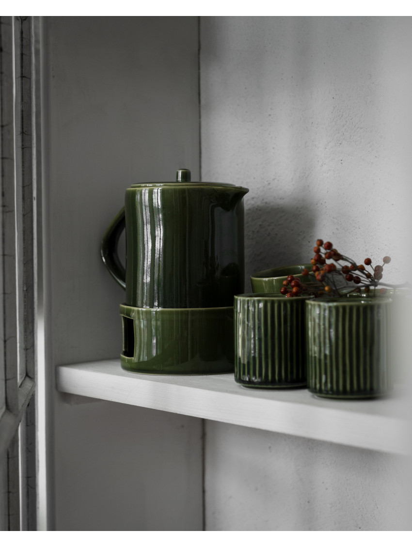 Vytvořte si útulnou chvilku a podávejte kávu, čaj, kakao nebo svařené víno v tomto zeleném vroubkovaném keramickém hrnku švédské značky ERNST.