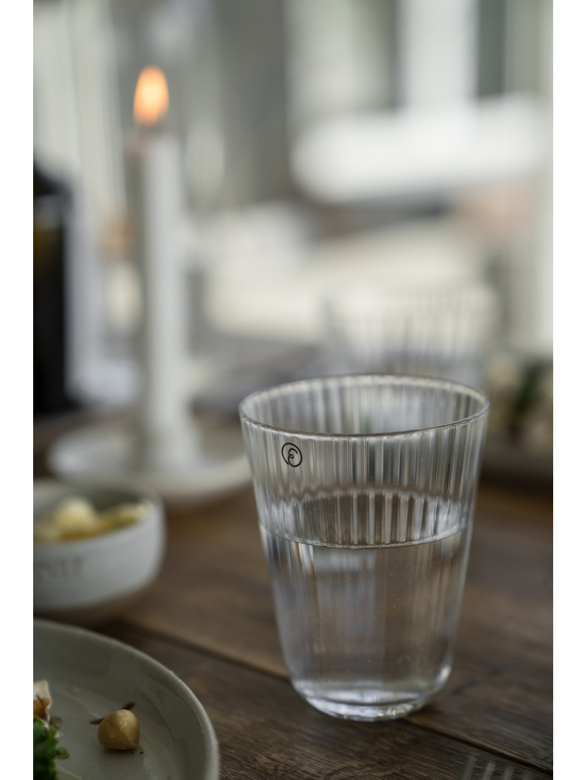 Sklenice, která je jednoduchá a přesto dodává danému okamžiku něco navíc. Novinka švédské značky ERNST v podobě této lehké vroubkované sklenice na vodu, džus, minerálku, smoothie...