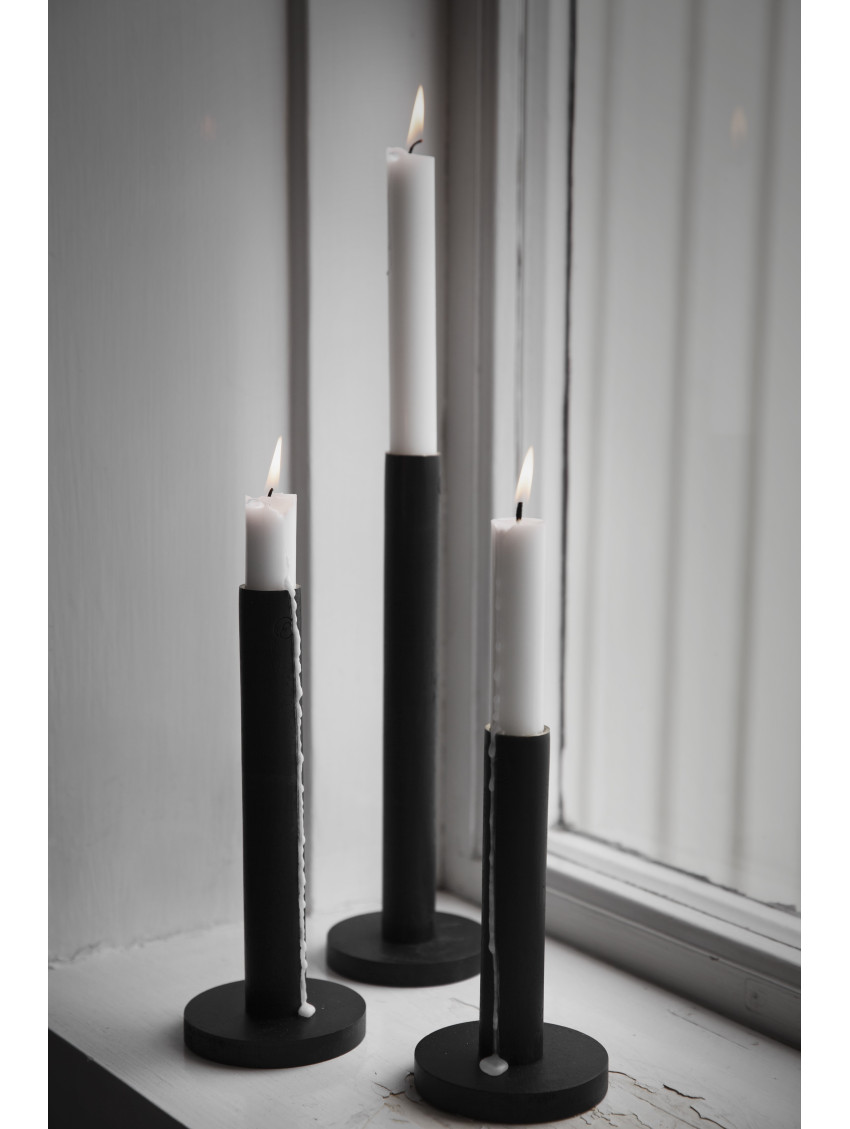 Tento krásný svícen na dlouhou svíčku z černého kovu má pěkný vlnitý tvar a bude ozdobou každé poličky, komody i stolu. Je dostupný ve dvou velikostech, přičemž se s tím menším krásně doplňují. Tento má průměr 14 cm a vysoký je 5 cm.
