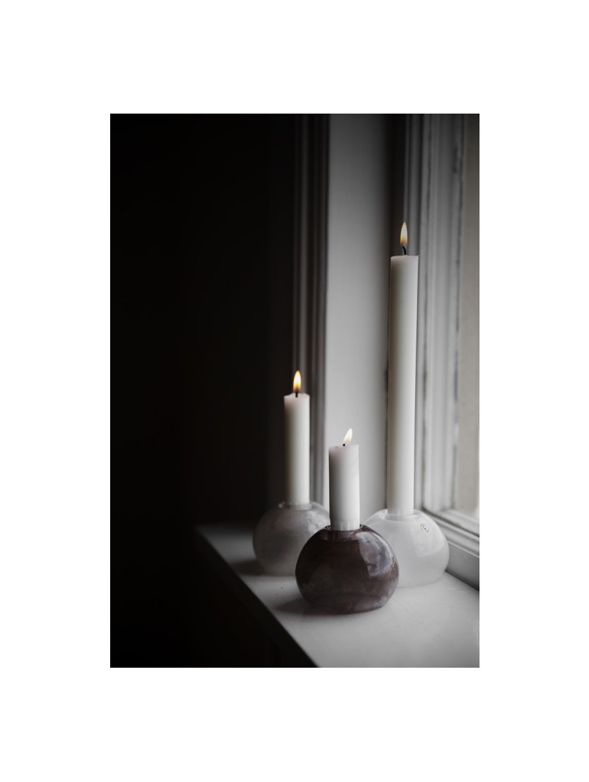 Skleněný válec, který má uvnitř připevněn stojánek na dlouhou svíčku. Kolem svíčky můžete dle fantazie naaranžovat věci, které máte rádi. V zimně snítku eukalyptu, chvojí, šištičky, vánoční baňky. Naopak v létě třeba písek, mušličky a kamínky. Okouzlí Vás však i prázdný jen se svíčkou. Výška 15 cm, průměr 11,5 cm
