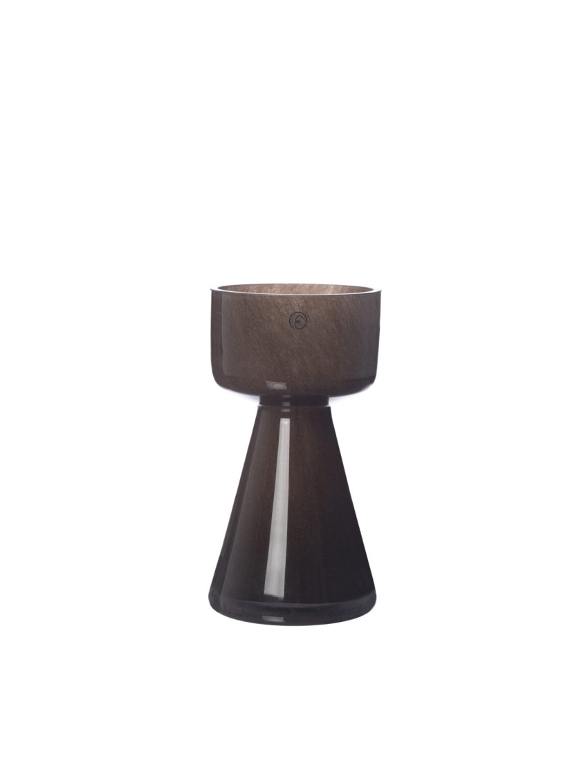 Jemná skleněná váza na hyacint z hnědého skla, kterou lze použít i jako svícen na čajové svíčky.