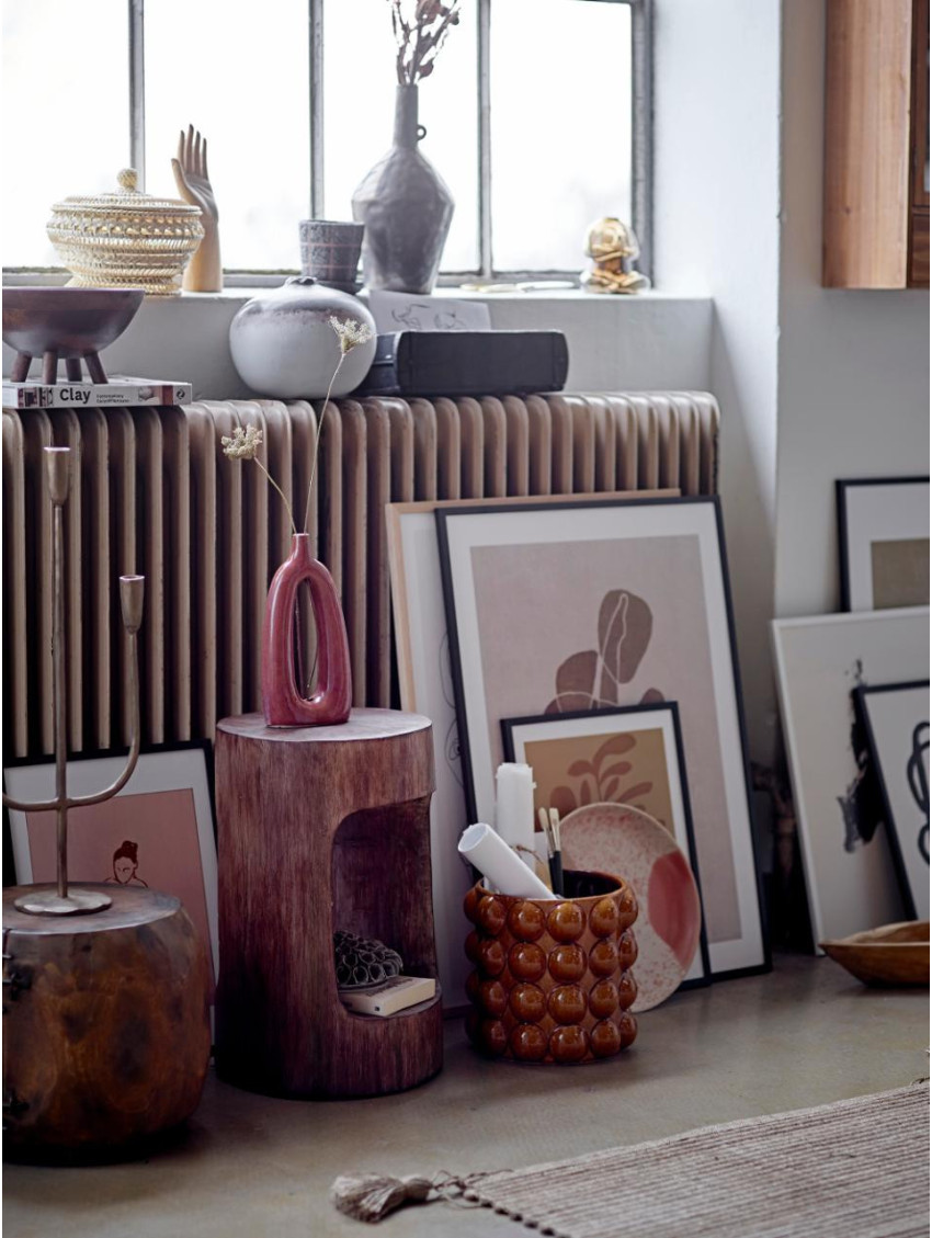 Svícen Rameeza od dánské značky Bloomingville je dekorativní svícen v tmavě hnědé reaktivní glazuře s volánkovým okrajem. Je vyroben z kameniny. Díky reaktivní glazuře se každý kousek bude lišit a bude jedinečný. Rozměry: 12 x 6 cm