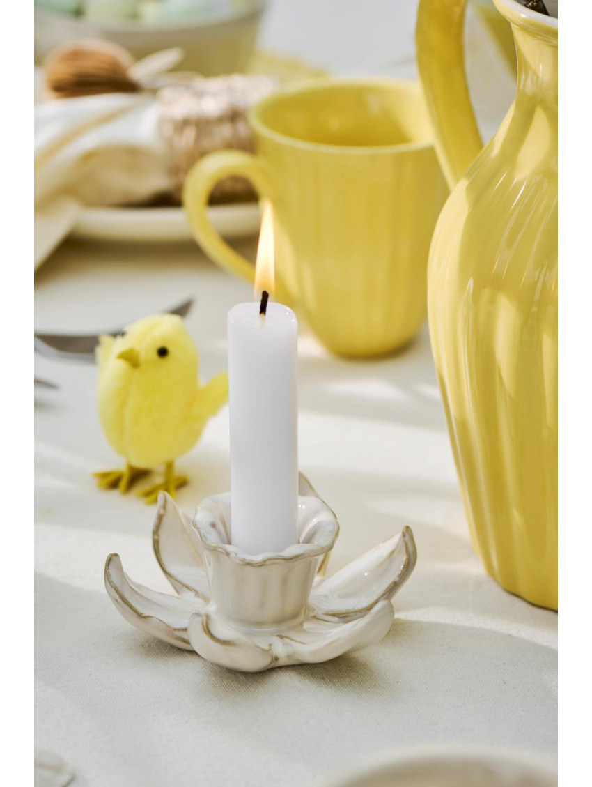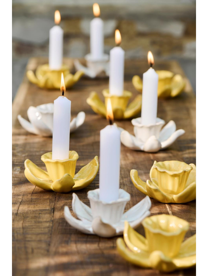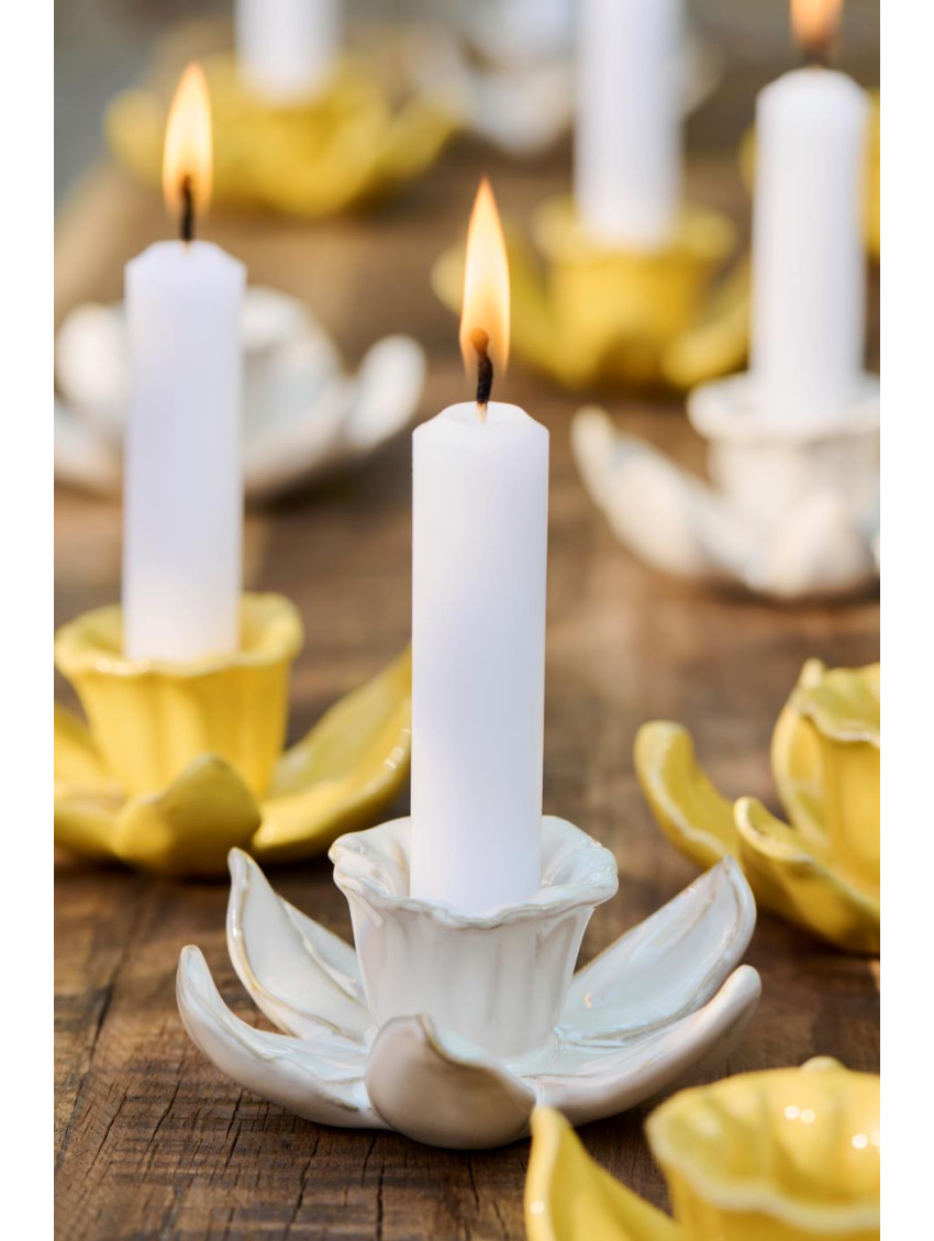 Jaro je ve vzduchu. Vůně narcisek a jejich květy ve váze zdobí nejeden interiér. Avšak, chcete-li jejich květ obdivovat věčně, zakomponujte do dekorací tento smetanový svícen na dlouhou svíčku dánské značky Ib Laursen, který podtrhne jarní náladu. Skvěle se bude vyjímat na svátečně prostřeném velikonočním stole, nebo jako solitér třeba na komodě, poličce, parapetu i venku na malém stolku na terase, kde už se těšíte z prvních jarních paprsků.