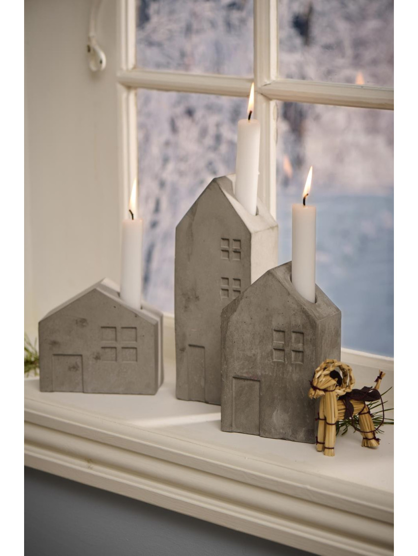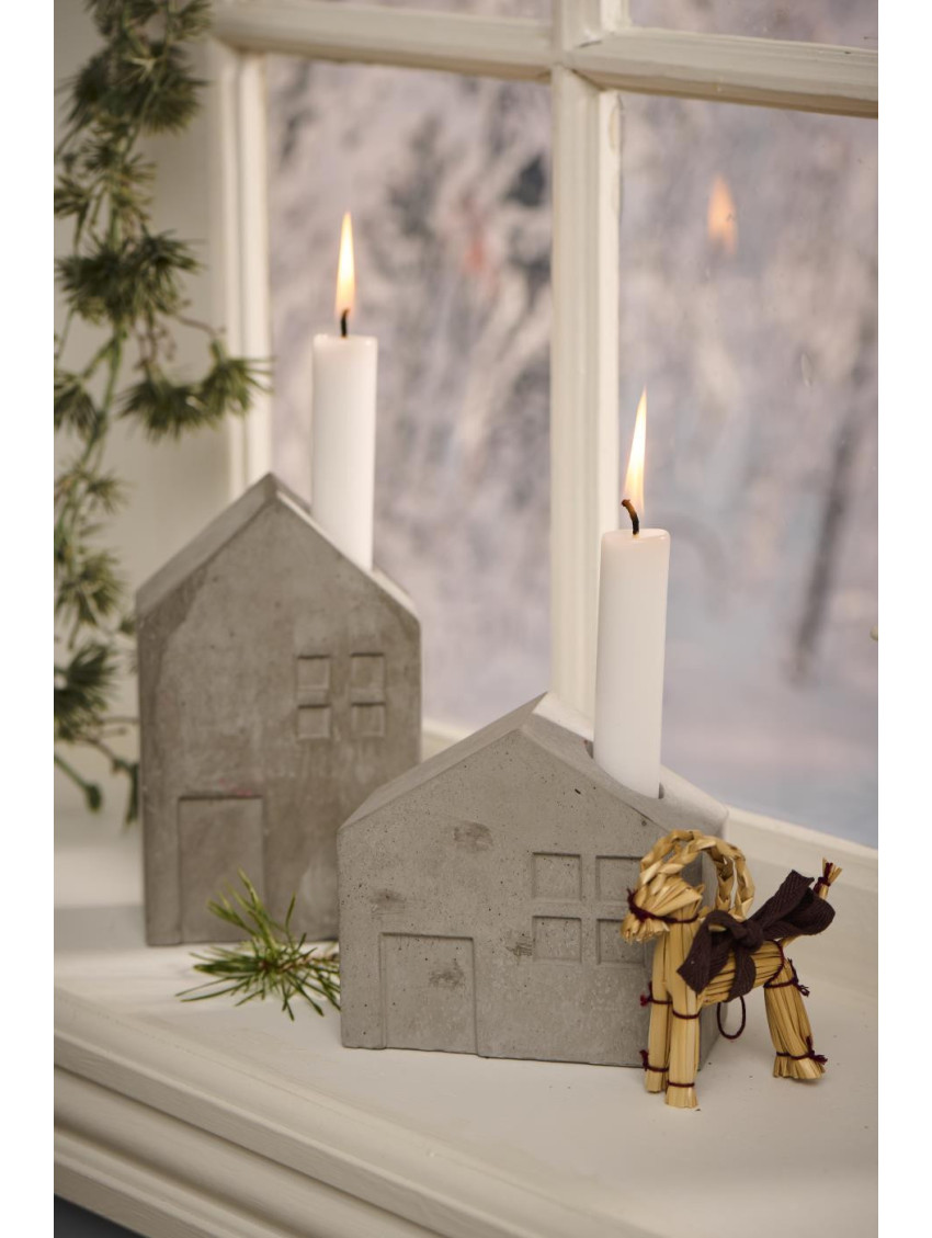 Domeček z betonu, do jehož komínku vložíte dlouhou svíčku.