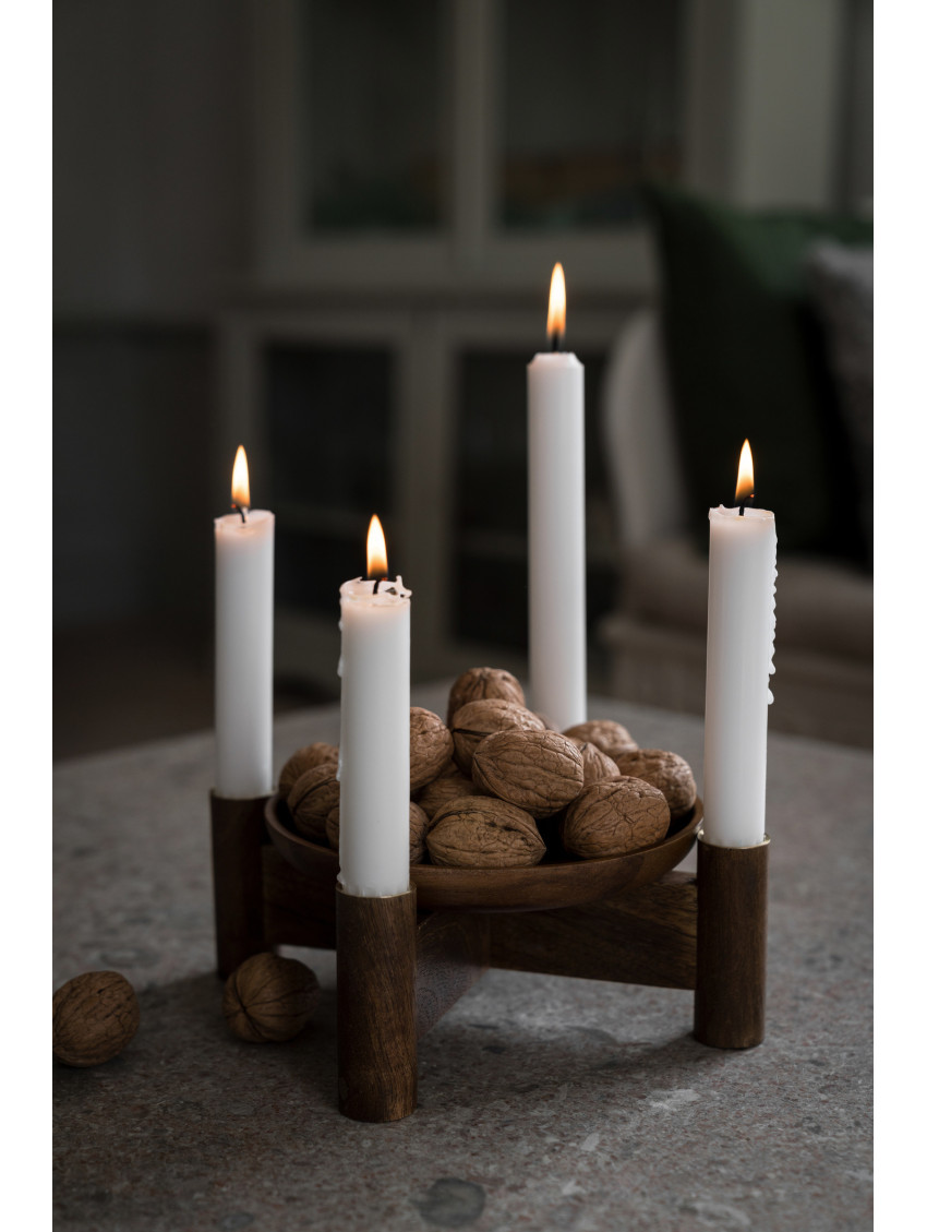 Dřevěný svícen ERNST je příjemnou dekorací pro období adventu. Umístěte doprostřed misku, ozdobte ji mechem nebo čímkoli jiným, co se vám líbí, nebo ho nechte jen tak přírodní, vložte do něj dlouhé svíčky, opatřete je mašličkami a užijte si útulnou chvilku.