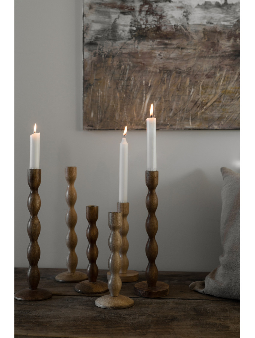 Elegantní svícen na dlouhé svíčky ze světlého mangového dřeva švédské značky ERNST, který v domově vytvoří teplo a klid. Pro pěkný efekt jej můžete zkombinovat se svícny ze stejné série, ale ve světlejší barvě.