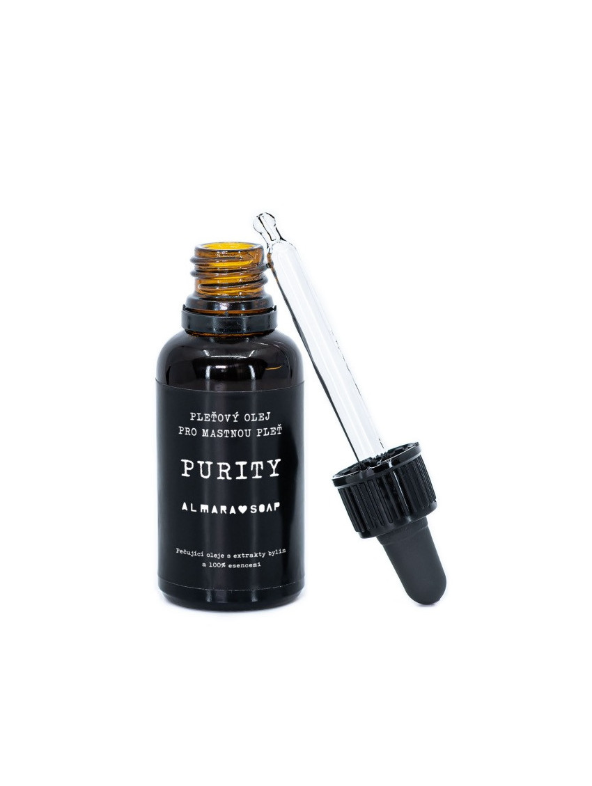 Všechny složky jsou pečlivé sestavené přímo pro mastnou pleť, kterou mohou trápit nedokonalosti a rozšířené nebo ucpané póry. Purity obsahuje pouze lehké oleje lisované za studena – konopný, hroznový, lískový a arganový, které poskytnou problematické pleti potřebnou hydrataci, hebkost a výživu, avšak ji zároveň nezatíží a nezpůsobí ucpávání pórů.