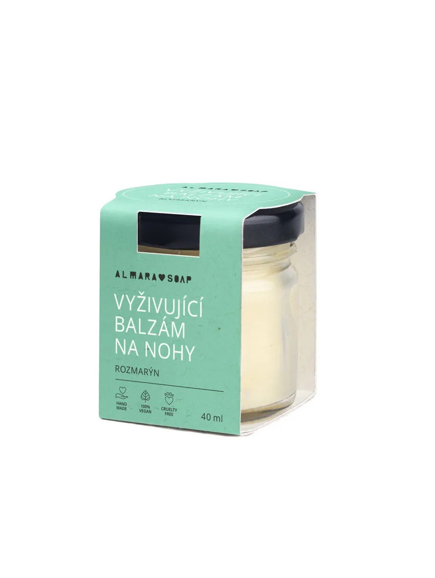Obsahuje bio bambucké máslo, bio fair trade kokosový olej a včelí vosk, které se postarají o hloubkovou výživu a pokožky. Dále extrakt z levandule, měsíčku, ořešáku a šalvěje - tyto bylinky jsou mají úžasné pečující, relaxační a protizánětlivé vlastnosti a mohou pomoci zklidnit podrážděnou nebo zarudlou pokožku nohou.