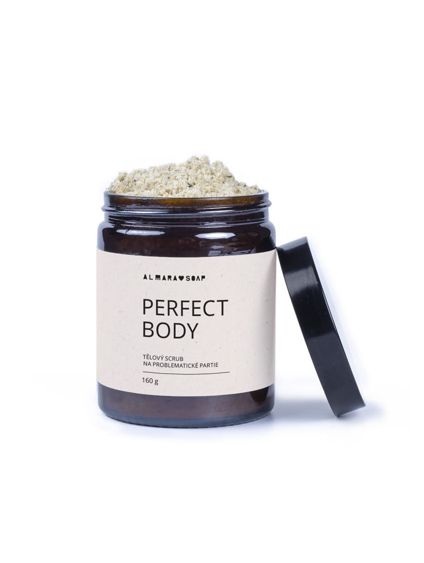 Scrub Perfect Body má základ z jemné mořské soli a drcených ovesných vloček, které pokožku zbaví odumřelých kožních buněk a podporují látkovou výměnu. Dále obsahuje bylinný macerát ve slunečnicovém oleji z břízy, rozmarýnu a břečťanu, známých svými zpevňujícími a prokrvujícími účinky. Dále pak lehké a jemné oleje lisované za studena – hroznový a konopný, které pokožku hydratují, vyživují a zvláčňují.