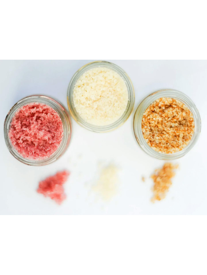 Obsahuje bio třtinový cukr, mandlový olej lisovaný za studena, bio bambucké máslo a přírodní žvýkačkové aroma. Krásně růžovou barvu mu dodává brusinkový prášek. Obsažené cenné oleje, másla a cukr vyčarují sametově jemné a šťavnaté rty.