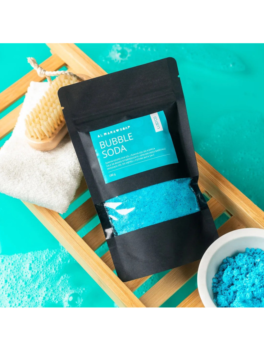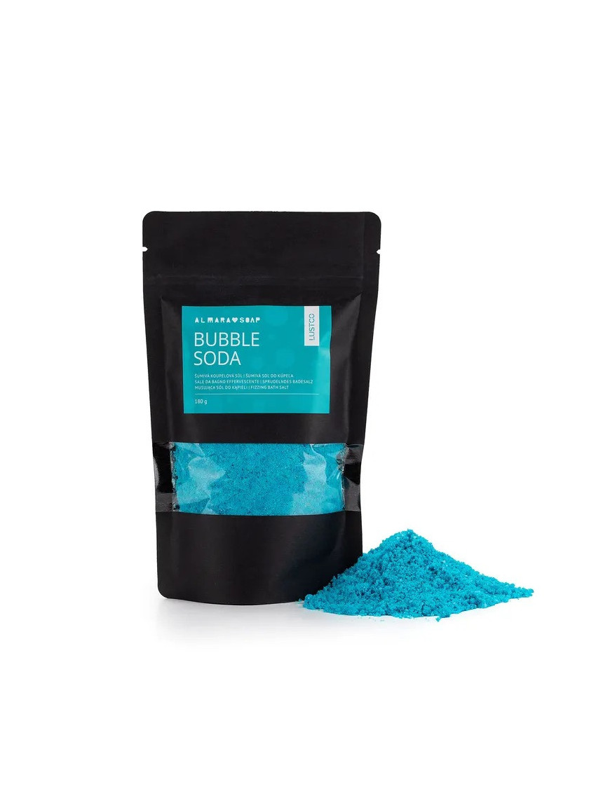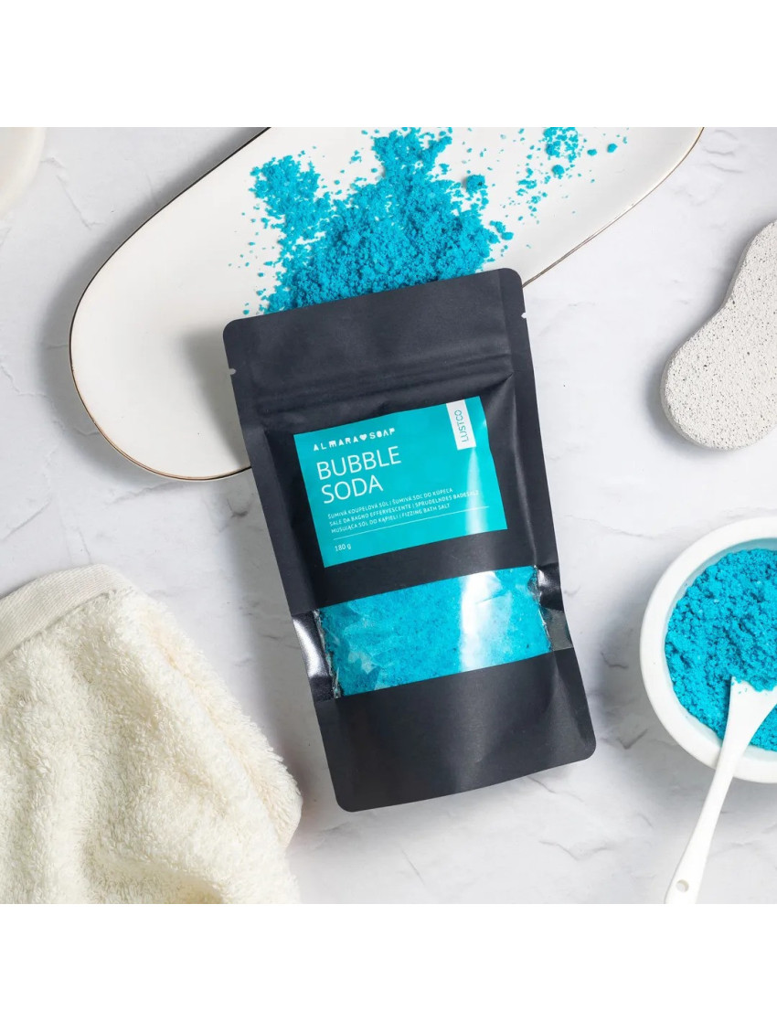 Bubble Soda přináší šumivou, voňavou a pěnící koupel, která potěší tělo i duši. Koupelový prach šumí jako bomba do koupele, pod proudem vody vytváří krémovou pěnu a zabarví vodu do výrazné tyrkysové – bez obav z obarvení vany.