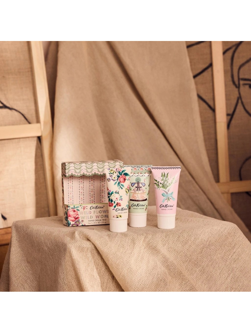 Dopřejte svým rukám dokonalou péči se sadou 3 krémů na ruce inspirovanými ikonickými vzory návrhářky Cath Kidston. Tyto cestovní krémy s bambuckým máslem, vitamínem E, kakaovým máslem a esenciálními oleji pečují o Vaši pokožku a zároveň ji rozmazlují příjemnou, osvěžující vůní.