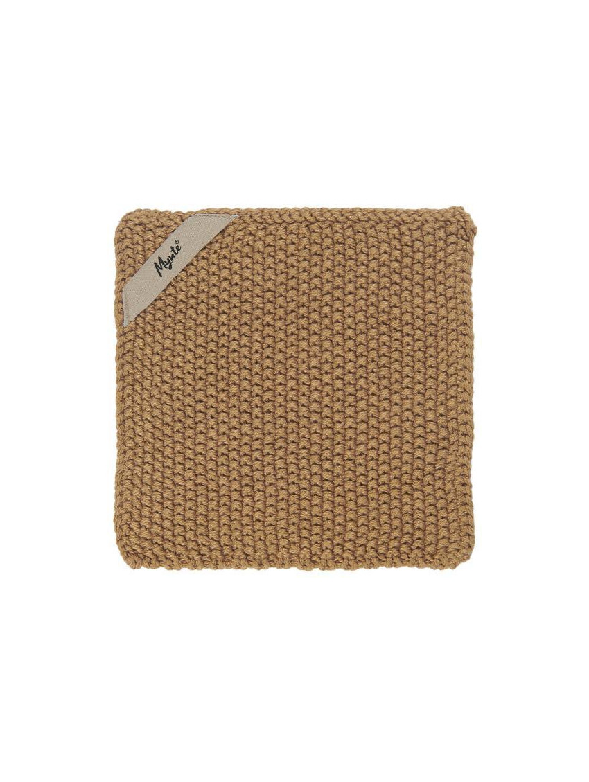 Pletená chňapka ve stylové jantarově hnědé barvě. Díky poutku s logem značky si podložku snadno pověsíte v kuchyni, a budete ji tak mít vždy po ruce.