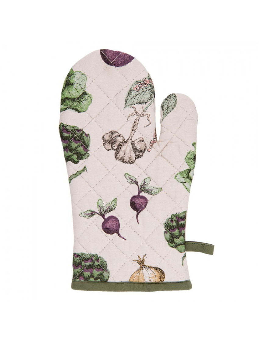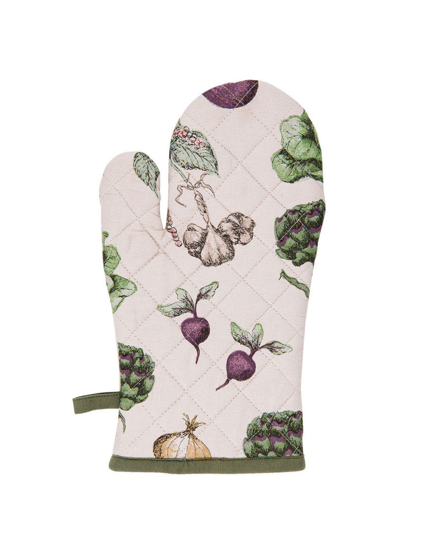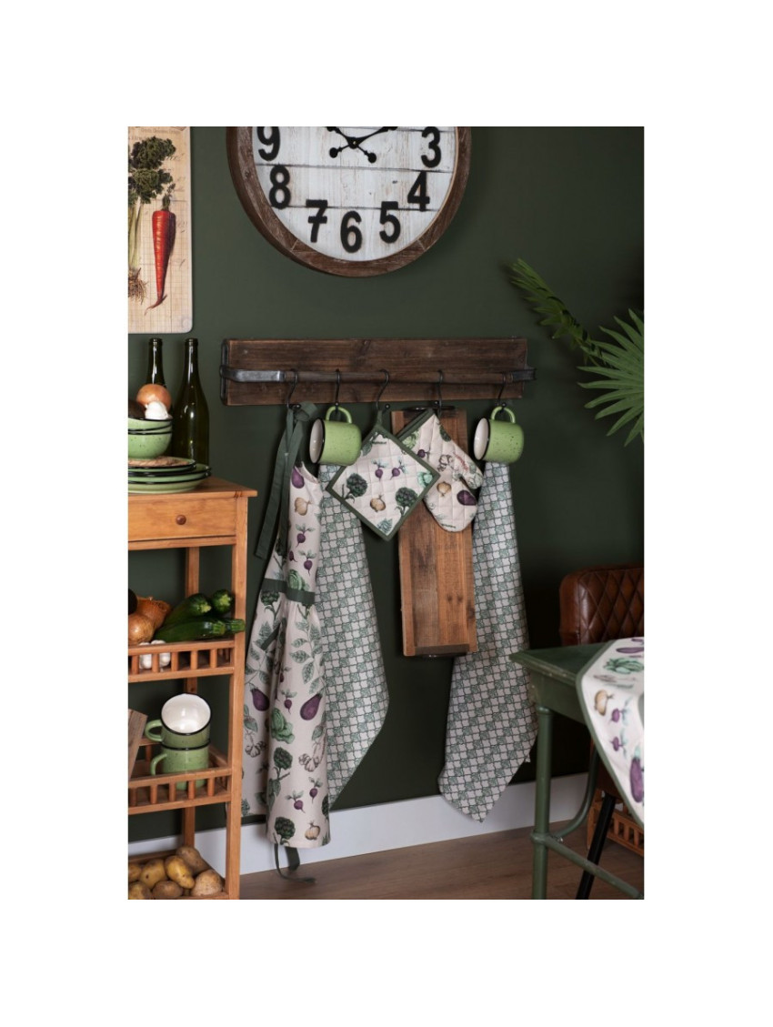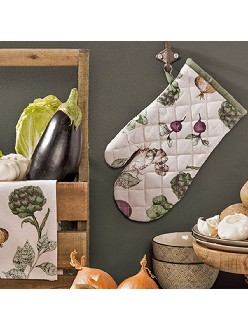 Bavlněná kuchyňská chňapka, která přináší do kuchyně nádech nostalgie. Krásně ilustrované různé druhy zeleniny připomínají zeleninovou zahrádku. Na jemném smetanovém pozadí vynikne detailní provedení a barvy zeleniny.