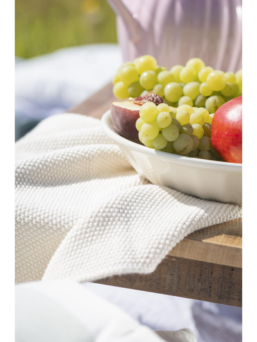 Pletená utěrka v krémové barvě od dánské značky Ib Laursen bude okouzlujícím doplňkem domácnosti. Měkká tkanina s vysokou savostí se stane všestranným pomocníkem v kuchyni i koupelně. Za poutko s logem značky si ji zavěsíte tam, kde ji budete mít po ruce. Třeba jako malý ručníček pro hosty. Anebo jí položíte na stůl jako malý středový ubrus.