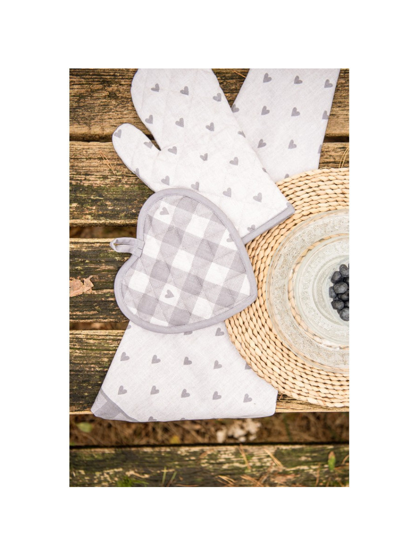 Krásná béžovo-šedá chňapka holandské značky Clayre&Eef s motivem srdce. Jedinečný kousek s vlastním designem, který skvěle doplňuje další textilie ze stejné řady LOVE IT.