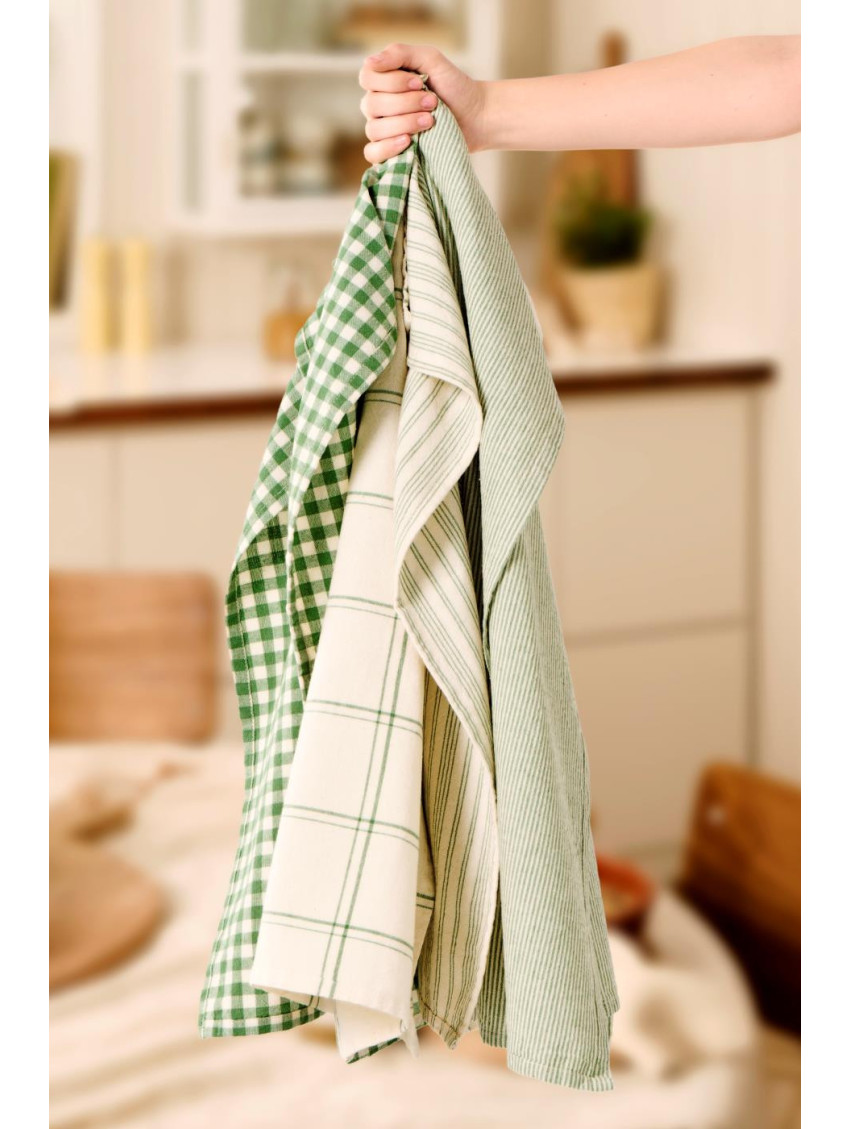 Hezká a kvalitní utěrka je základním vybavením každé kuchyně. Že by si Vaše kuchyň zasloužila nové? Sáhněte po těchto kostkovaných dánské značky Ib Laursen. Smetanová barva v základu a na ní velké čtverce tvořené zelinkavou barvou.