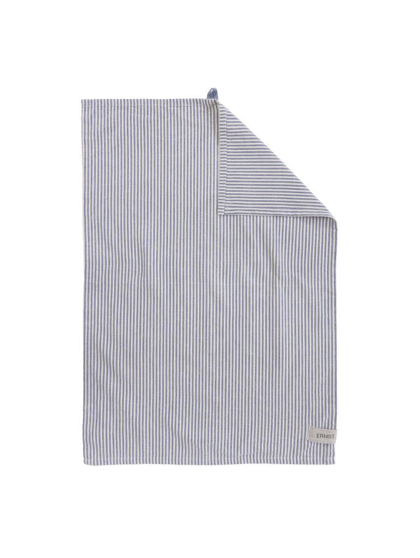 Kuchyňské utěrky ERNST s úzkými modrými pruhy vytvářejí v kuchyni hřejivý a útulný pocit. Dokonalý detail pro ty, kteří ocení funkci i estetiku. Nebojte se v kuchyni kombinovat s dalšími utěrkami a pečicí rukavicí, kde každý detail harmonicky působí.