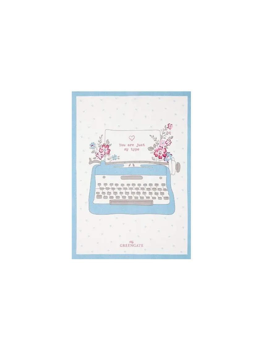Kuchyňská utěrka Piece Printed Elba White od dánské značky GreenGate je krásným spojením retro stylu a moderní elegance. Na bílém podkladu vyniká stylizovaný motiv psacího stroje doplněný nápisem „You are just my type“, což jí dodává osobitý a hravý vzhled. Utěrku navíc lemuje decentní modrý okraj, který ji příjemně orámuje a dodává jí svěží vzhled.