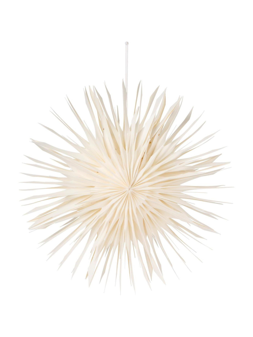 Hvězda je vyrobena z bílého papíru, působí přírodně a teple, a když ji zrovna nepoužíváte, snadno ji složíte a uschováte do krabičky.