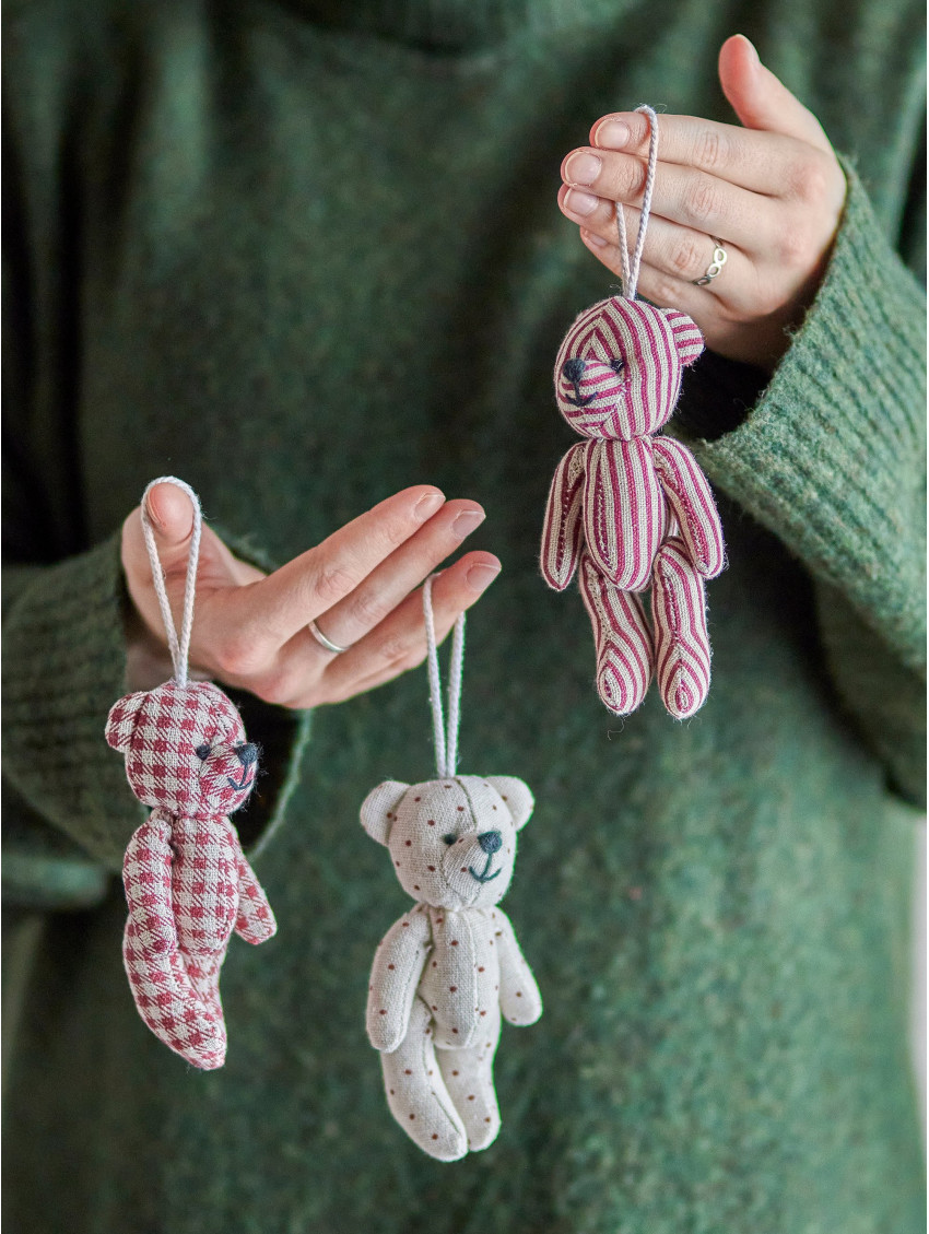 Kouzelná dekorace v podobě malého medvídka, kterého díky stužce můžete zavěsit na vánoční stromeček, na větvičku ve váze, na háček mezi kuchyňskými utěrkami, na chaloupce na kličku od okna, nebo ho jen tak darovat pro jeho roztomilost.