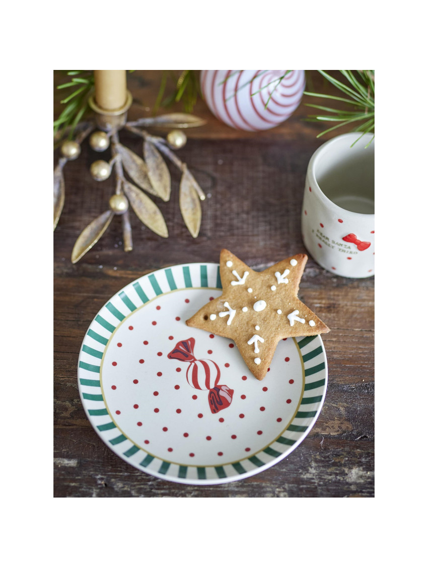 Vánoční talíř Yule od Bloomingville je ideální pro sladké pokušení svátečního období. Díky stylovému designu se zelenými pruhy a okouzlujícím motivem červeného karamelu dodá tento talíř slavnostní atmosféru každému stolu s dezerty. Je ideální pro servírování všeho od vánočního cukroví až po vybraný dezert.
