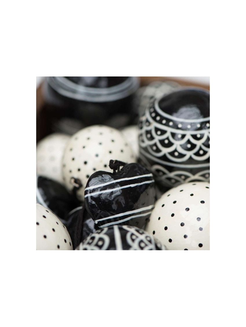 Roztomilá krémově bílá koulička z tvrzené papírové drti zdobená černými puntíky romanticky doladí každou sváteční výzdobu.