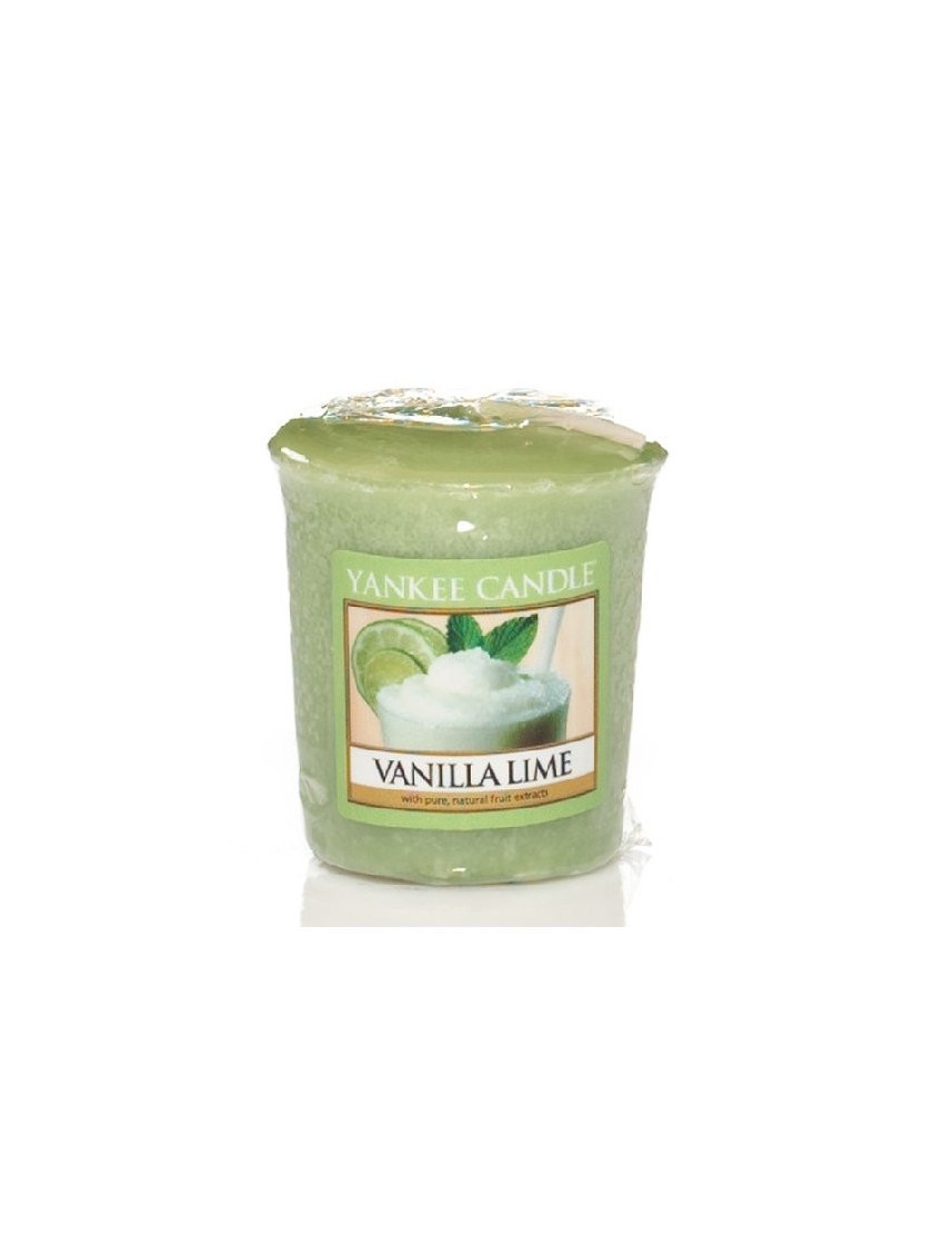 Popis vůně: (Vanilka s limetou) Hebká a osvěžující vůně…krémová bohatost vanilky se sladkou cukrovou třtinou a kapkou limetkové šťávy. Tato klasická oblíbená vůně patří mezi tzv. „platinové vůně“, 14 světově nejprodávanějších svíček od Yankee Candle.
