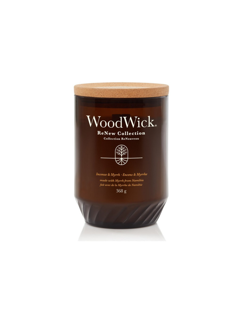 Unikátní svíčka WoodWick® ReNew, která voní až 75 hodin, dopřeje požitek vašim smyslům a vyhoví vaší snaze o zodpovědný přístup k přírodě. Obsahuje bio složky, včetně recyklovaných a upcyklovaných materiálů a přírodních esenciálních olejů. Dřevěný knot vydává jemné praskání. Směs sójového a kokosového vosku neobsahuje barviva a sklenice je vyrobena z 55 % z recyklovaného skla. Korkové víčko je z odpovědně pěstovaných stromů.