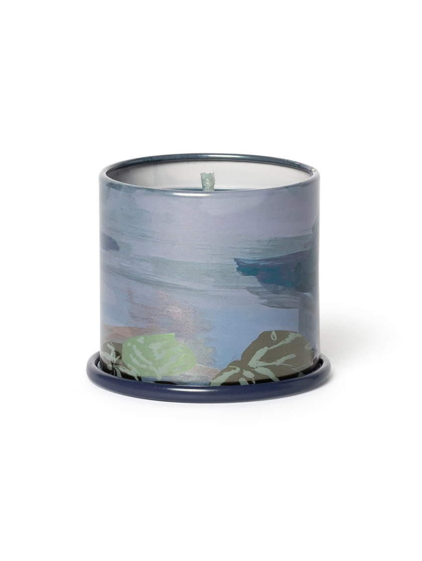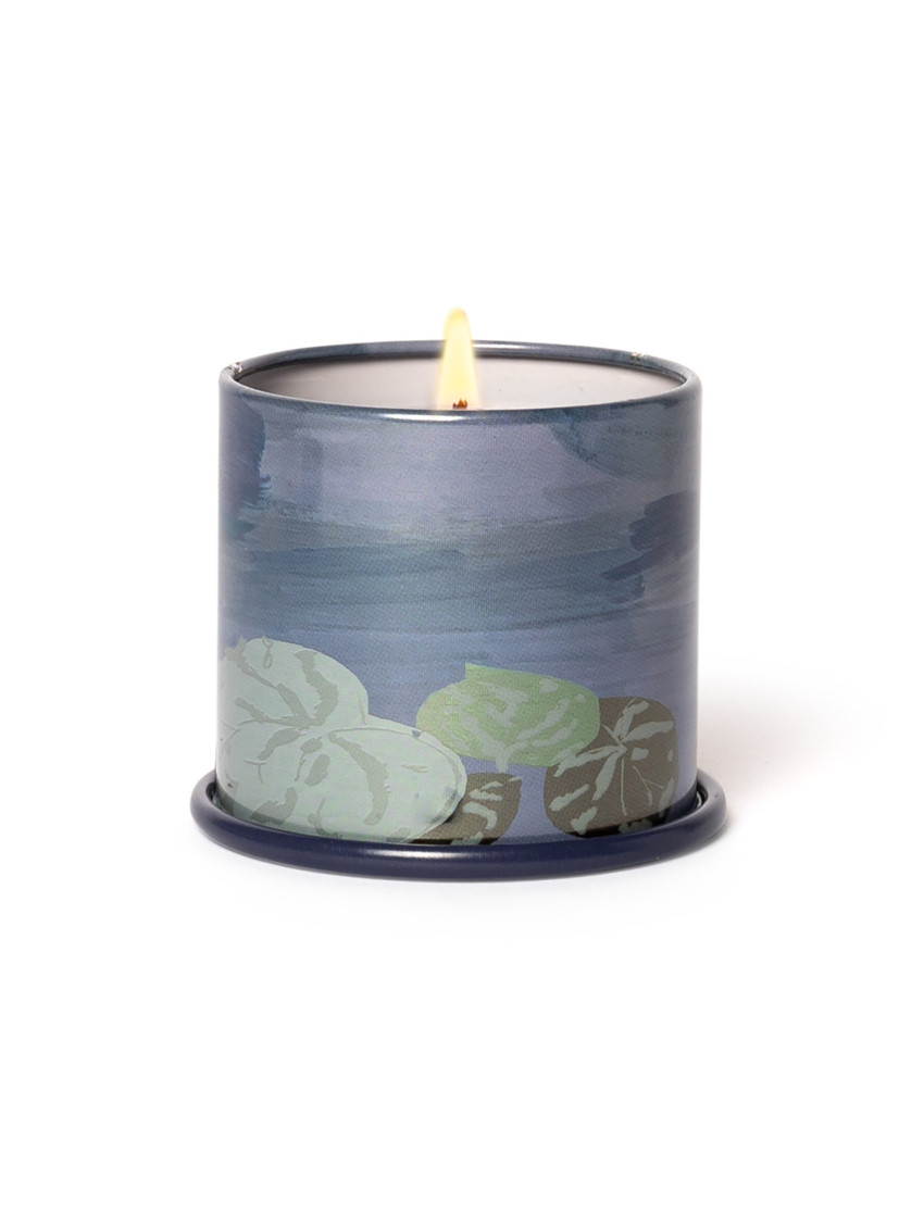Vonná svíčka z rostlinného vosku v plechové dóze.