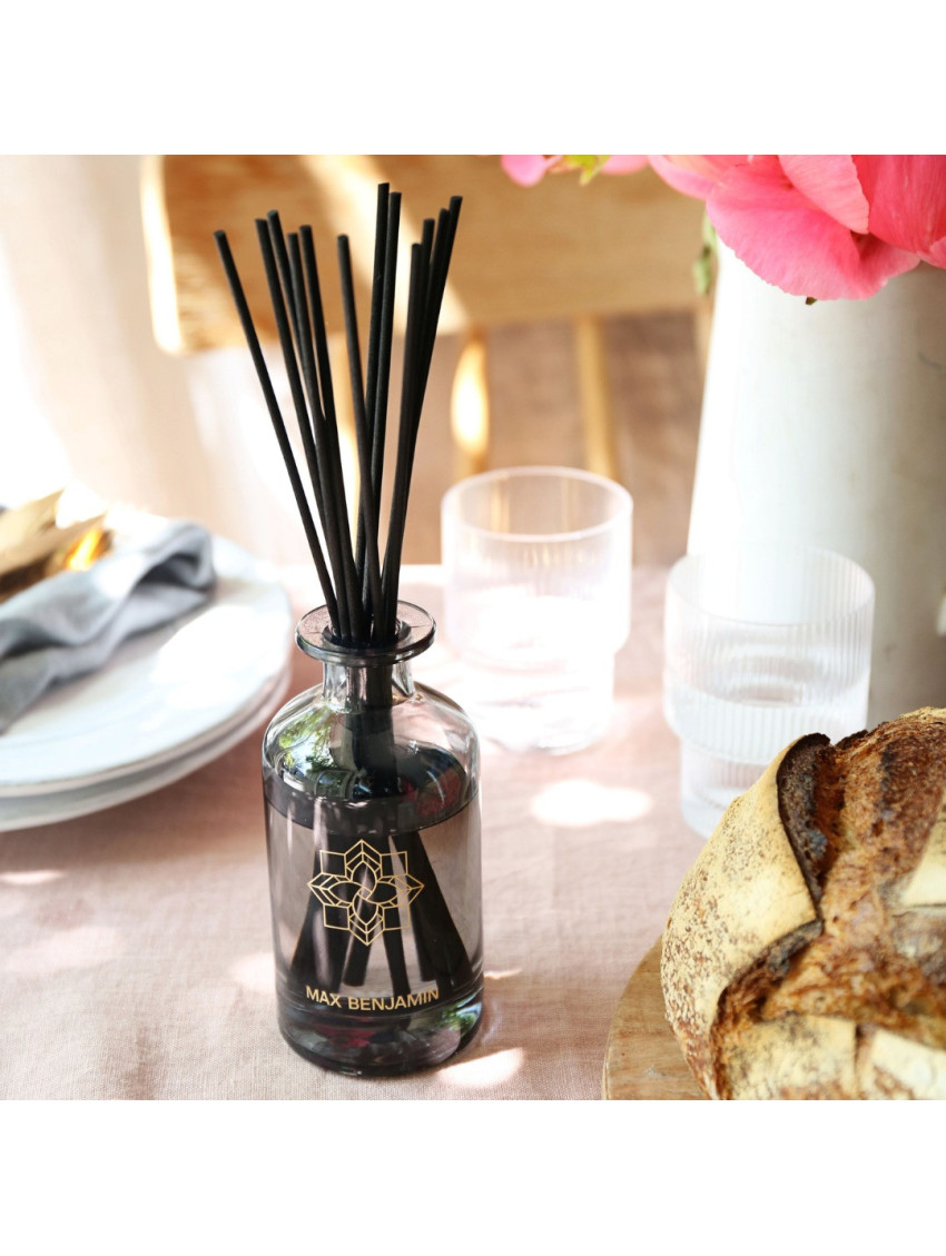 Difuzéry představují snadný způsob, jak přidat povznášející vůni do libovolné místnosti, kanceláře nebo prostoru. Luxusní difuzéry Max Benjamin jsou vyrobeny z elegantního kouřového skla s charakteristickým zlatým logem, obsahují černá stébla, pomocí kterých vzlíná vůně do prostoru.