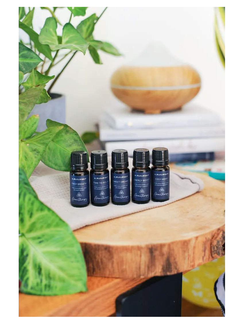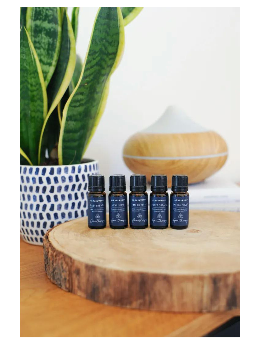 Směs esenciálních olejů pro navození útulné atmosféry domova.